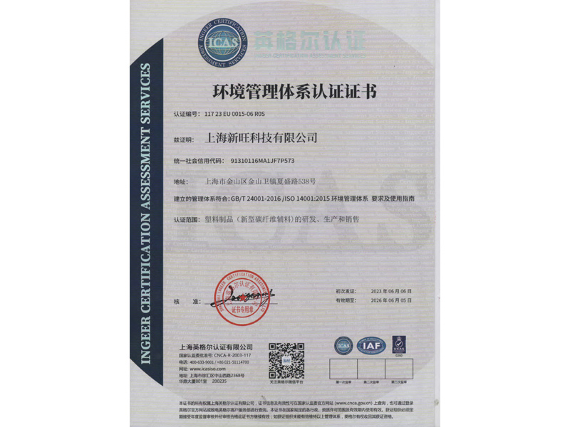 證明材料:環(huán)境管理體系認(rèn)證證書ISO 14001:2015