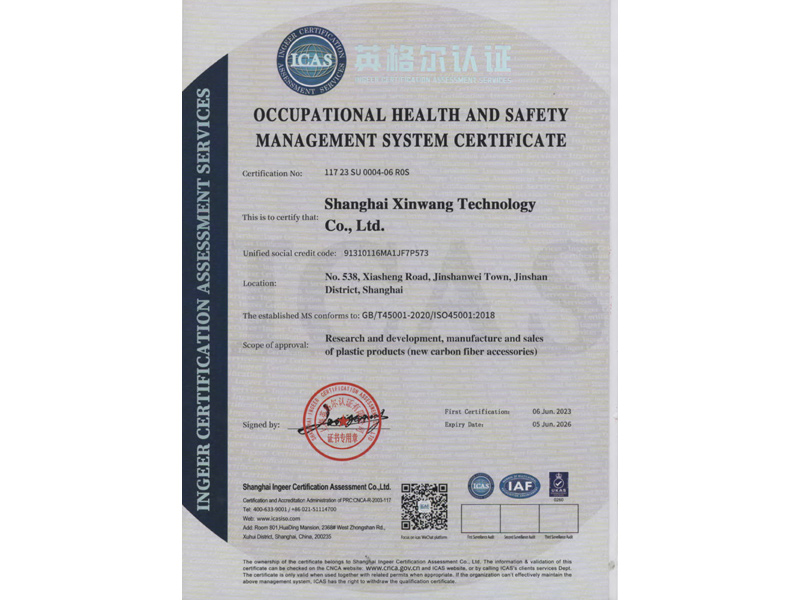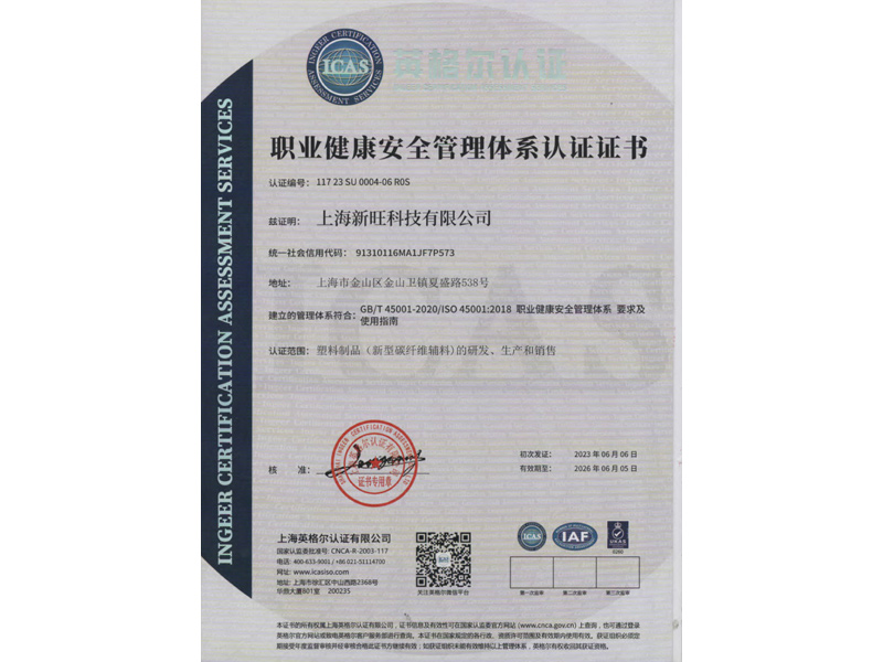 證明材料:職業(yè)健康安全管理體系認(rèn)證ISO 45001:2018