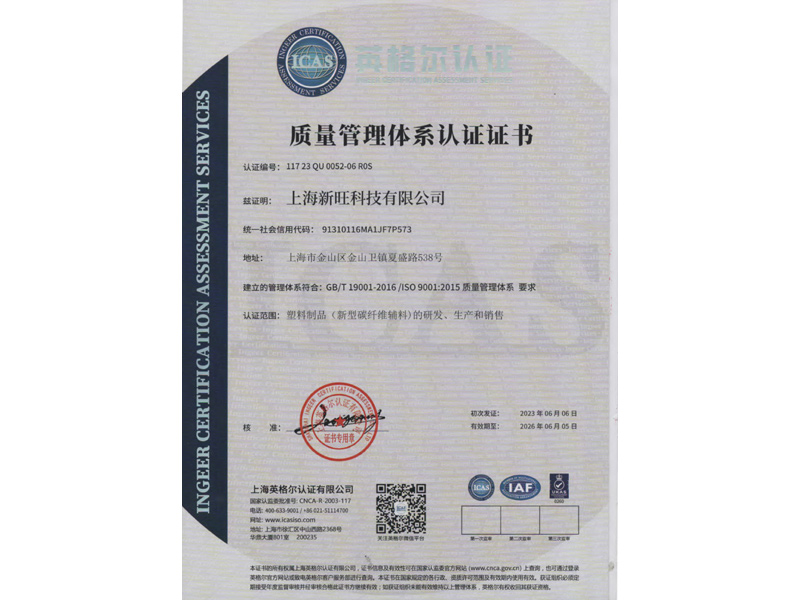 證明材料:2015年注冊證書 驗證范圍:用于復(fù)合材料制品成型的輔材的生產(chǎn)和銷售