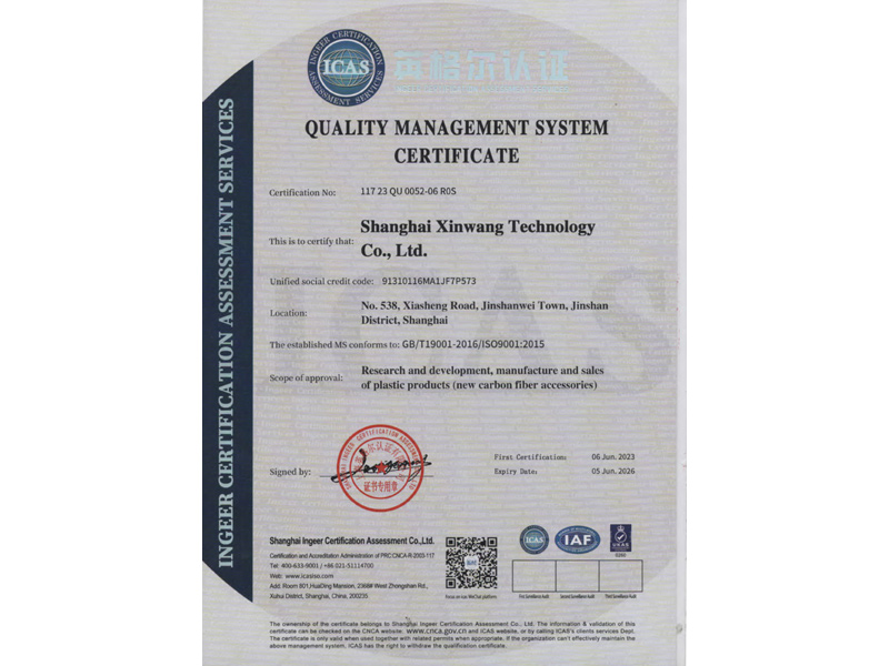 質(zhì)量管理體系認(rèn)證證書(英文)