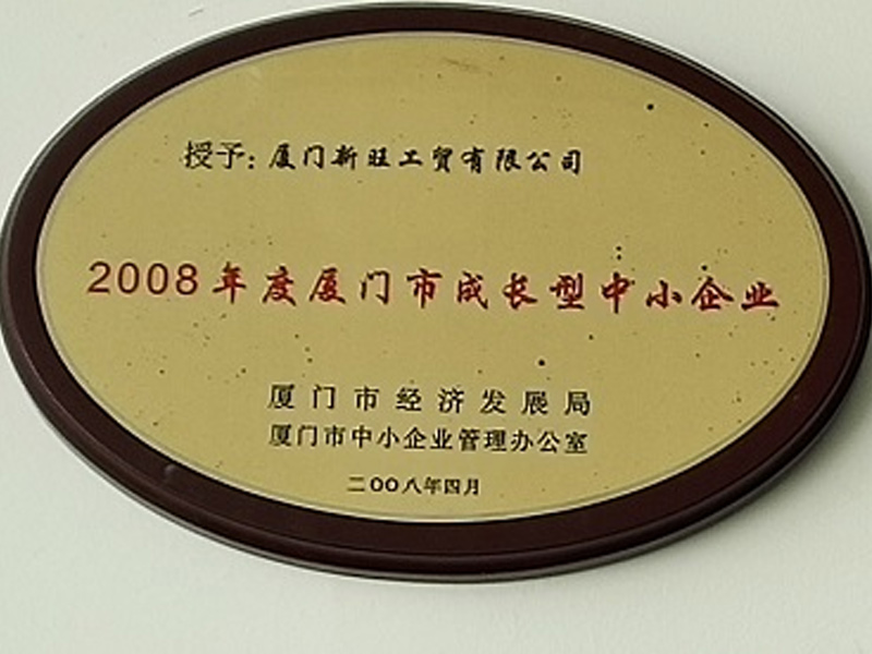 證明材料:2008年廈門市成長型中小企業(yè)